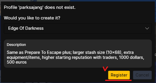 이 후 기존 타르코프와 똑같이 진행 하시면 됩니다.
