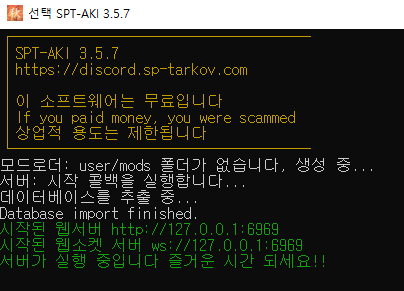첫 실행 시 약간의 과정이 자동으로 진행되며 잠깐 기다려야 합니다. 이 후로는 바로 서버가 켜집니다.